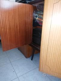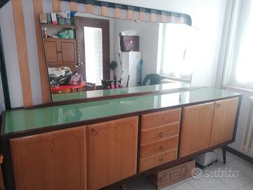 Vendo due mobili, uno con vano bar, dell'anno 1960 circa, ben tenuti e conservati, ripiano con inserto in cristallo. Misure larghezza 170 e 230 cm Piano lavoro h. 90 cm con specchio 165 cm Profondità cm. 48. Trattabile.