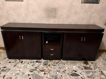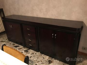 Salotto anni 70 composto da 3 mobili, 1 tavolino con rotelle e doppio ripiano, tavolo rettangolare 80 x 180 cm con 6 sedie.