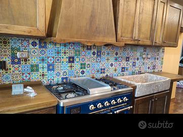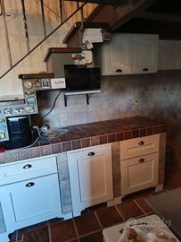 Mobili shabby,rustici, per cucina in falsa muratura,con ante in legno di castagno,e finitura a scelta.