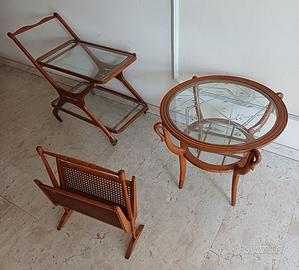 Delizioso soggiorno vintage, primi anni ’50, in ciliegio, rilucidato recentemente. Tavolo cm. 167x81, mobile 45x145, mobile 45x196, entrambi alti 87 + alzatine originali + 3 complementi originali: carrello, tavolino rotondo, portariviste. 1.000 EUR in contanti al ritiro a cura dell’acquirente, piano terreno, Mariano Comense.