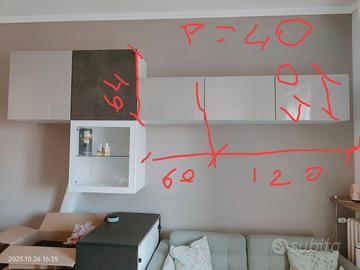 Vendesi causa trasloco mobili soggiorno IKEA BESTA, in condizioni pari al nuovo come da foto. La composizione include 12 ante, di cui 3 vetrate.