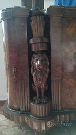 vendo mobili del primo 900 in radica del soggiorno con tavolo con piano in cristallo e con applicazioni di leoni intarsiati