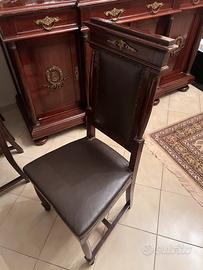 Il tutto é realizzato con vero legno e pelle, le vetrine con cristallo e relativi inserti colorati.