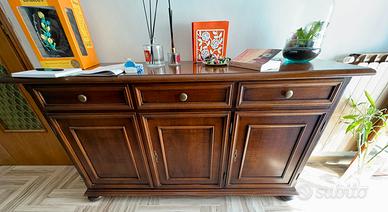 REGALO mobili soggiorno in legno, arte povera. Smontaggio e Ritiro a carico dell’acqurente: - Tavolo cm 100x100 allungabile (200cm) con 4 sedie - Madia 3 ante cm 160x43x88(h) - Madia 4 ante cm 214x45x94(h) - Mobile con vetrina 4 ante cm 208x45x225(h) Come da foto allegate.