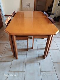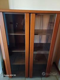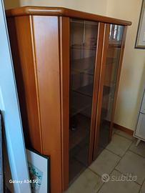 Mobili da soggiorno anni 70. Tavolo allungabile (venduto senza sedie). Credenza 4 ante e 4 cassetti. Vetrinetta a 4 ripiani. Prezzo: 150 euro a pezzo, 400 se acquistati insieme.