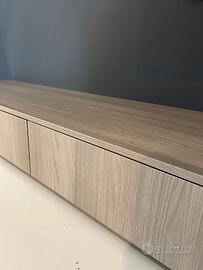 Soggiorno materico olmo juta e laccato corda/verde prato. Prodotto nuovo da campionario.