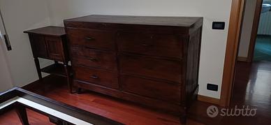 Regalo un como', due comodini, un comodino alto e base letto matrimoniale, tutto in legno massello ben tenuto.