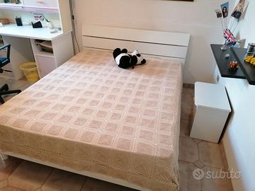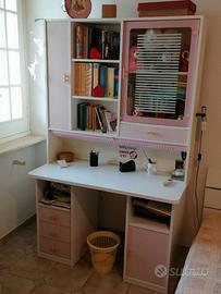 Vendo causa inutilizzo mobili per stanzetta per ragazza ben tenuti, con sottili righe bianche e rosa chiaro. Il set è composto da scrivania (misure: larghezza 125, prof.59, altezza 203), comodino (misure larghezza 52,5, prof. 33, altezza 47 cm), armadio (misure larghezza 142, prof. 51, altezza 203 cm). E’ presente anche un letto matrimoniale (materasso non incluso) che non fa parte della composizione iniziale.