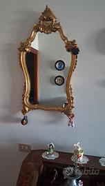 Orologio a pendolo , specchio , ribaltina, poltrona.