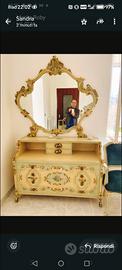 Vendo camera da letto completa armadio comodini como' letto contenitore due poltroncine e specchiera più salotto con divanetto 2 poltrone + tavolino e consolle più specchiera stile barocco veneziano artigianali dipinti a mano fine anni 1970 provenienti da fabbrica di Cantù.