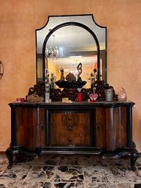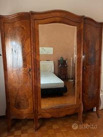 Vendo per trasloco elegante mobilia d’epoca in stile Liberty / primo ‘900, in legno massello con splendide venature e dettagli intarsiati.