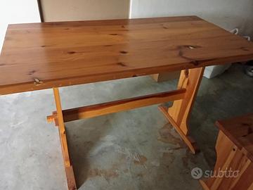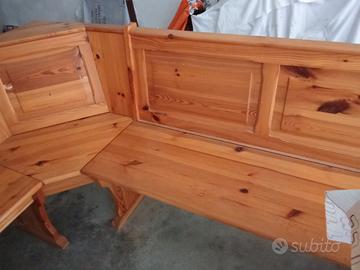 Mobili stile tirolese.Tavolo, giro panca, 2 sedie, panca.Per altre foto/ video e misure ,mandare msg . Potete visionare di persona ,senza impegno. Il giro panca e' composto da tre pezzi che si staccano.