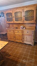 vendo tavolo, 4 sedie, cassapanca e mobile con vetrina separabile in stile tirolese.