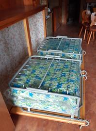 Vendo credenza L 204 cm- H 223- P 50 Con 2 letti singoli a scomparsa (185x75) Tavolo 150x74 + 2 prolunghe 40 cm ciascuna 4 sedie Angoliera H 207 lati 57 cm Vendo anche separatamente Smontaggio e ritiro a carico dell' acquirente Prezzo totale 700 euro