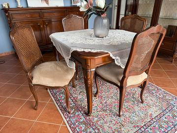 Madia, vetrina e tavolo con otto sedie di altissima qualità. Come nuovi, solo qualche piccolo segno.