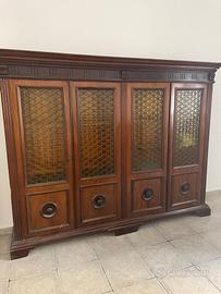 Lo studio è composto da una scrivania in noce Armadio 4 ante in noce Poltrona co braccioli in pelle Due sedie in pelle.
