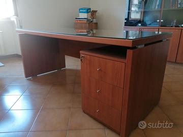 Scrivania con cassetti, sedia in pelle rossa, Mobile portadocumenti. In perfetto stato. Trasporto a carico dell'acquirente. Euro 500.