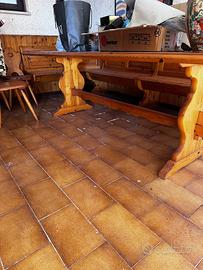 Tavolo di circa 3 mt X 1, panca ad angolo, 6 sedie e mobile credenza.