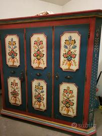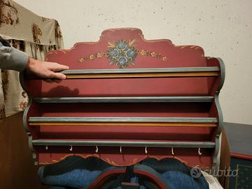Vendo arredamento tirolese, composto da cassapanca, specchio, tre seggiole, armadio a tre ante, piattaia. Ritiro a carico dell'acquirente.