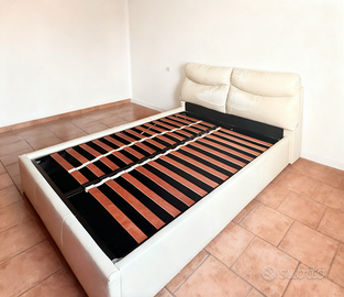 Regalo anche un letto matrimoniale: la testata è in ecopelle e presenta alcune parti rovinate, ma per uso temporaneo va benissimo con un copritestata.