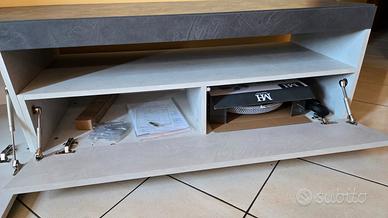 Base porta TV/portaoggetti con cassettoni ampi e superficie effetto cemento