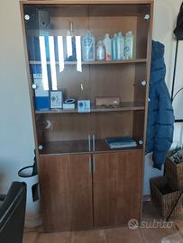 Vendo per inutilizzo mobili per ufficio, composto da scrivania grande ad L, cassettiera 3 cassetti, armadio a vetrina, scrivania tipo reception e 3 sedie