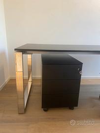 Cassettiera classica da scrivania con ruoto e n 3 cassetti con chiave