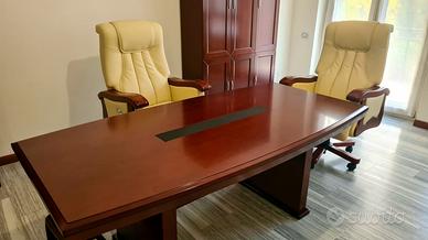 Si vendono SOLO IN BLOCCO a meno della metà del prezzo esposto sul sito arrediorg modili per ufficio: tavolo/scrivania lungo due metri, due mobili alti e tre bassi a tre ante con vetro e ciechi, divano color crema in vera pelle, due poltrone prestige vera pelle reclinabili. Mobili direzionali di lusso dell'iconica azienda italiana Arrediorg, sinonimo di eccellenza e qualità. Questa collezione di arredo ufficio di prestigio, installata meno di due anni fa in un ufficio di viale Poetto a Cagliari è ideale per studi notarili, legali, finanziari o uffici di alta rappresentanza che desiderano comunicare solidità e autorevolezza attraverso uno stile classico senza tempo.