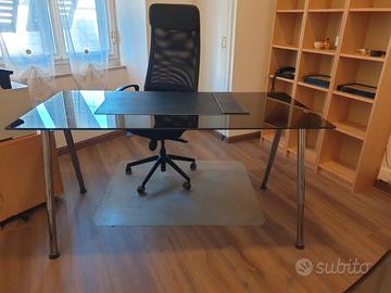 Sedia girevole da scrivania. Tavolo scrivania in vetro nero lucido. Due sedie in plexiglass. Tutto Ikea usato pochissimo e ben tenuto. Ritiro e eventuale smontaggio a carico dell' acquirente, zona Genova Centro