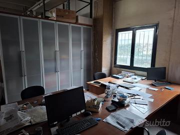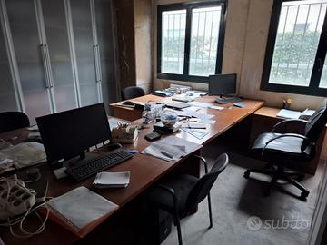 Mobili ufficio : 4 scrivanie, 7 mobiletti bianchi, 5 mobili grandi, banco, sedie, come in foto
