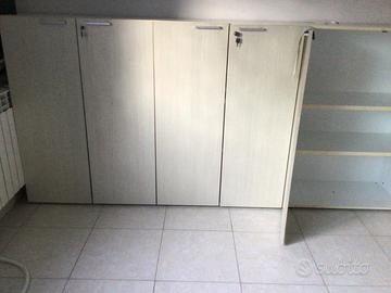 N.2 Scrivanie 160x80 + N.1 Penisola 120x60 + N.3 Mobili 90x45 H.125 Vendo per ritiro attività Regalo 1 Sedia + 1 Cassettiera Non Spedisco possiamo smontarli Ritiro presso Ufficio sito Casoria (Na)