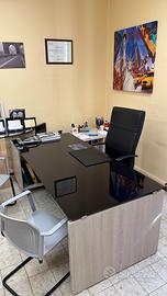 Mobili usati pochissimo,di alto livello,scrivania elegantissima in vetro lucidissima pulibile in un attimo,senza nessun segno di danneggiamento.Il tutto pagato oltre 6.000€ ,pochi anni fa.