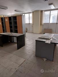 mobilio vario: n. 7 armadi in metallo con 4 ripiani cm 120x202 - mobile assemblato composto da 4 mobiletti da cm 47x120 assemblato con apertura bifacciale cm 95x240 h 95 piano in legno - 1 mobile combinato cassettiera e sportelli cm 135x47 h 84 vendita in blocco, vendita separata da concordare