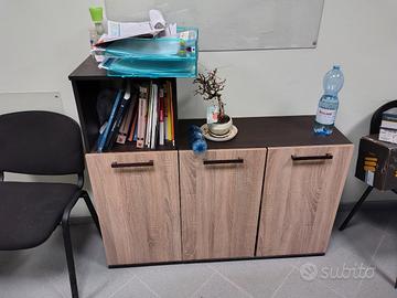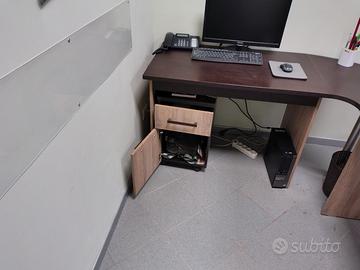 scrivania da ufficio angolare con cassettiera ruote e mobile a tre ante.possibilita' di avere una seconda scrivania completa identica