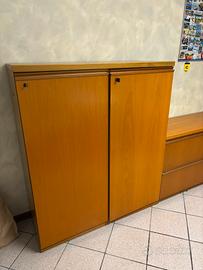 Vendo due mobili da ufficio per inutilizzo. Il mobile grande ha due ante e tre scomparti riposizionabili ognuna e misura 120x140x45cm. Il mobile piccolo ha un’anta e due cassetti porta cartelline e misura 150x80x45cm. Entrambi sono in ottime condizioni. Prezzo leggermente trattabile.