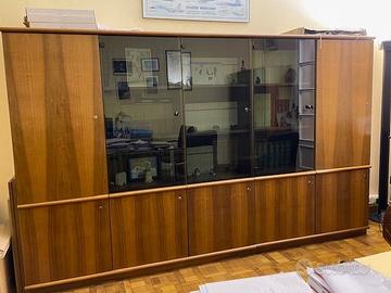 La scrivania (cm 206x100, cassettiera laterale con ante scorrevoli 211x74) e la libreria (cm 305x48x187). sono in noce "Fiore", prodotte da SCHIROLLI e risalgono alla metà degli anni 80 del secolo scorso. PER INTUIBILI RAGIONI, LO SMONTAGGIO E IL TRASPORTO DEI MOBILI (CHE SI TROVANO A TORINO) SONO A CURA E SPESE DELL'ACQUIRENTE.