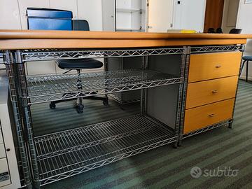 - Un tavolo pianale in legno con supporto in acciaio, L 5,5 m ; P 3 m