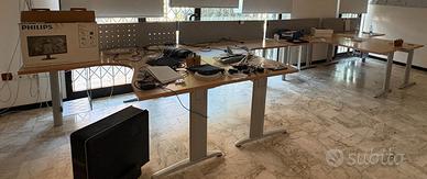 Per dismissione ufficio vendo mobili, 2 scrivanie in vetro, 4 scrivanie ad angolo componibili, 1 tavolo in legno grande direzionale, 1 scrivania rettangolare, 1 tavolo grande da sala riunioni, 8 sedie da sala riunioni, 1 sedia direzionale con ruote, varie cassettiere alte e basse con e senza ruote.
