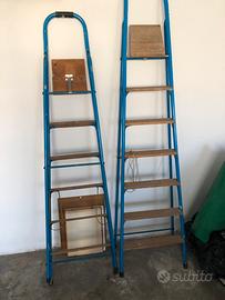 Vendo, solo in blocco, 2 mobiletti, una scaffalatura di metallo ed uno scaleo ( quello di sinistra nella foto), 2 mensole e 2 tavolinetti. Ritiro a mano!
