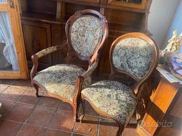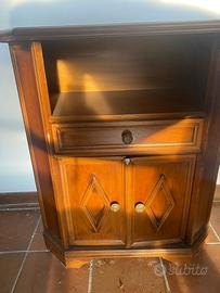 Vendo vari mobili della stessa linea e dello stesso legno, due poltrone, sempre di legno con rivestimento vintage, e lampade varie. Tutto proveniente da una casa anni 60-70.