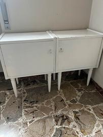 Regalo per sgombero mobili vintage in legno, verniciati in bianco, caratterizzati dal tipico design anni '50/'60 con gambe a spillo. I mobili sono strutturalmente solidi, ideali per amanti del restauro, shabby chic o per arredare case in stile retro/vintage.