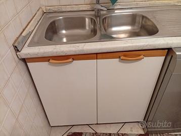 Mobili usati e qualcosa da sistemare, misura uno 185x 60, e da attaccare vicino 60 x 75 con cassetto, mobili x lavandino lunghezza 2,60 x 75 profondità 33, tutti già smontati solo da attaccare con viti, più lavello inox con mobiletto da cm 80x 75, lavello inox 116x50 con sgocciolati a dx.Prezzo trattabile.