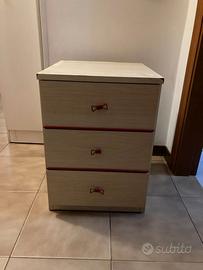 Elementi dove si possono inserire 2 letti singoli (esclusi) misure cm. 265x190x58. Nello spazio per i letti sono presenti 2 contenitori a "pozzo", che si possono anche spostare, misure cm. 90x75x30. Libreria misure cm. 200x95x26. Elemento sopra alla libreria misure cm. 65x95x58. Armadio con cassetti misure cm. 265x95x58. 1 comodino a 3 cassetti. Si prendono in considerazione anche vendite per singoli elementi tenendo in considerazione la larghezza di cm. 95 e l'altezza di cm. 265 con prezzi da definire al momento.