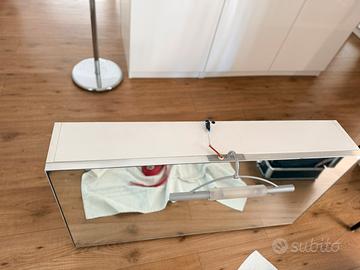 Mobiletto bagno, colore bianco con specchiera , luce a led e mensola in vetro, apertura attuata, in perfette condizioni.