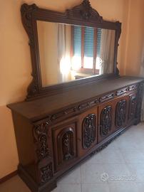 vendesi mobilio comprensivo di camera da letto matrimoniale (completa di armadio e cassettiera), due letti singoli, armadio con doppio vano e mensole centrali, sala da pranzo (completa di cristalliera, tavolo, sei sedie, comò con specchio), cucina completa (come da foto).