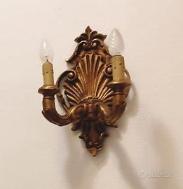 specchio e applique muro con intarsi oro, lampadario in stile, metallo con lavorazione particolare (ha un discreto peso, occorrono due persone per il posizionamento a soffitto), a gocce 80 cm ideale per sala.