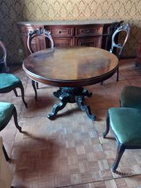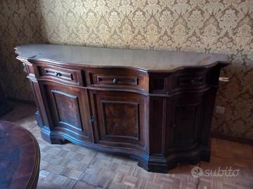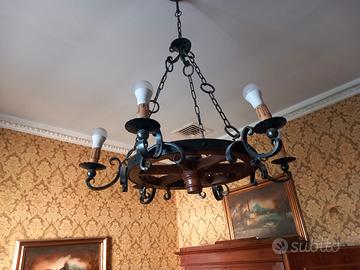 Vendesi mobilio vario: Tavolo d'antiquariato con 6 sedie 130€ Lampadario misto legno e ferro battuto a ruota di carro 100€ Credenza 50€ Prezzo in blocco 250€. SOLO RITIRO A MANO E SMONTAGGIO A CARICO DELL'ACQUIRENTE.