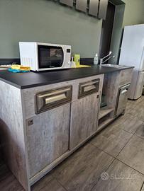 Mobile di Lavoro: Progettato per ospitare lavastoviglie, lavandino e numerosi scompartimenti, perfetto per ottimizzare gli spazi di lavoro.