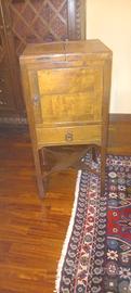 in legno con ruote girevoli con specchio e lavabo ottone probabile toilette vintage