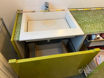 Mobile Bagno sospeso colore verde con doppia specchiera illuminata cm 72 + cm 72, con cassettoni, lunghezza Mobile cm 147 profondità cm 55 marca RIFRA Made in Italy € 250,00